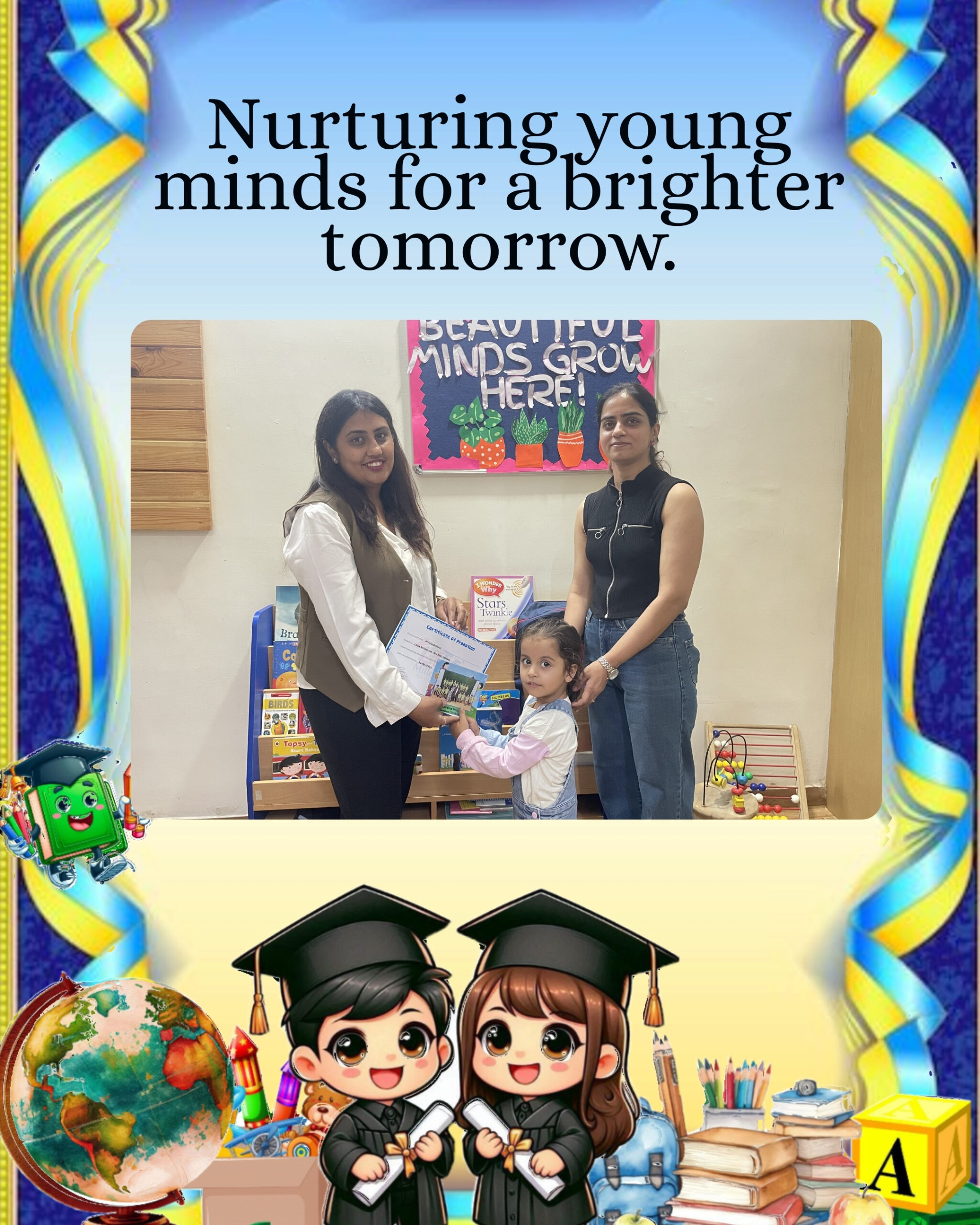 Our vision is to build a preschool that shapes not just learners but confident and kind individuals. By combining thoughtful learning with strong values, we aim to create a foundation that supports every child’s bright future.